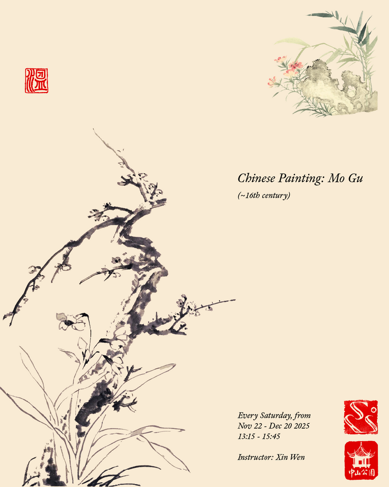 This class explores Mo Gu aesthetics through the works of two literati masters — Chen Chun (Ming dynasty) and his Plum Blossoms and Daffodils, and Yun Shouping’s Flower, Bamboo and Rock from the Ou Xiang Studio Sketch Album.